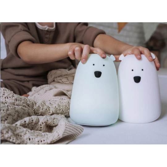 je vyrobená z príjemného a mäkkého silikónu. Vďaka možnosti výberu zo troch farebných prevedení je skvelou voľbou ako do dievčenskej, tak aj chlapčenskej izbičky. Tento roztomilý kamarát bude svojím príjemným svetlom robiť vašim deťom spoločnosť pri večernom zaspávaní, ale pokojne aj chvíľu po ňom. V prípade, že medvedíka zabudnete vypnúť, sám sa po 2 hodinách svietenia automaticky vypne. Deti si svietiaceho medvedíka natoľko obľúbia, že ho budú chcieť brať so sebou aj na dovolenku či víkendový pobyt. Lampička je určená na svietenie, nie je hračkou.