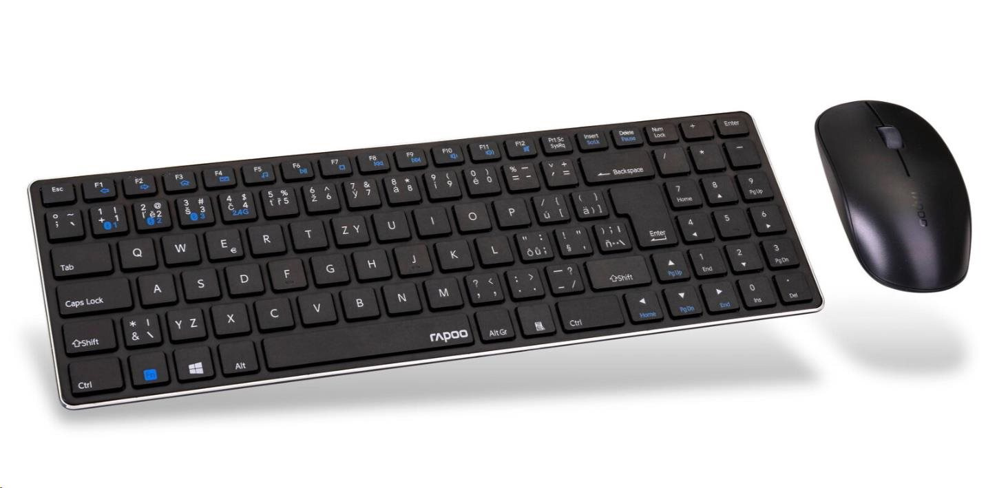 Súprava klávesnice a myši RAPOO 9300M, bezdrôtová viacrežimová tenká myš a ultratenká klávesnica, čierna
