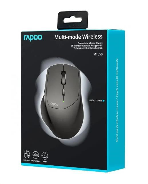 Bezdrôtová laserová myš RAPOO MT550, viacrežimová: 2.4 GHz, Bluetooth 3.0 & 4.0, čierna