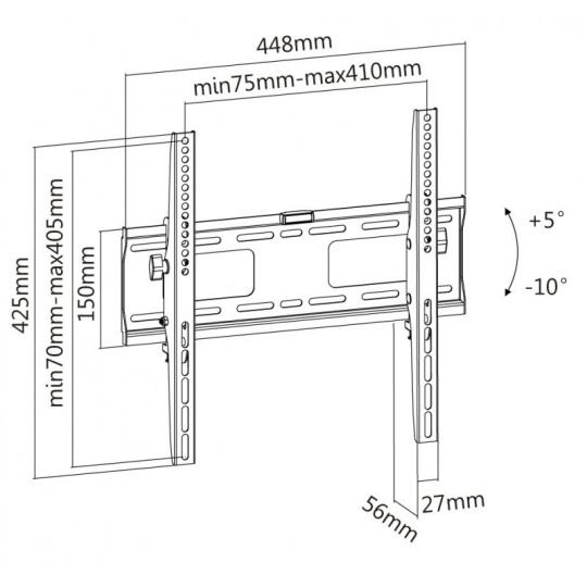 Nástenný oceľový držiak na Plasma a LCD TV s uhlopriečkou 32"- 55" (81-140cm) a hmotnosťou maximálne 50kg. Konzola na zavesenie TV s vodováhou, vertikálne výklopný +5°/-10°, vzdialenosť od steny 56mm, materiál oceľ, cenovo výhodný, farba čierna. Uchytenie VESA: 200x200, 400x200, 300x300, 400x400.