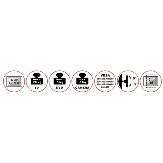 Televízny stolík na veľké LCD TV s uhlopriečkou 37"- 70" (94-178 cm) a hmotnosťou maximálne 50 kg. Stredový nosný profil 125-160 cm na kolieskach s aretáciou, držiak výklopný +5°/-12°, horná výškovo nastaviteľná otočná plocha pre kameru max. 5 kg, polička 34x46 cm max. 5 kg, Alu/ocel, farba biela. Uchytenie VESA: 200x200, 300x300, 400x200, 400x400, 600x400.