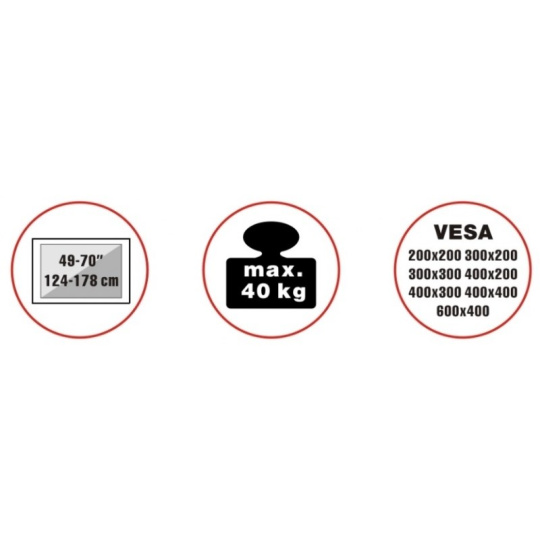 Unikátna televízna skrinka na Plasma a LCD TV s uhlopriečkou 49"- 70" (124-178cm) a hmotnosťou maximálne 40kg. Dizajnová kombinácia bielej kovovej konštrukcie + 4x drevené nohy (buk). Precízne tvarované a vedené káble pre maximálny estetický zážitok. Upevnenie VESA: 200x200, 300x200, 300x300, 400x200, 400x400, 600x400.