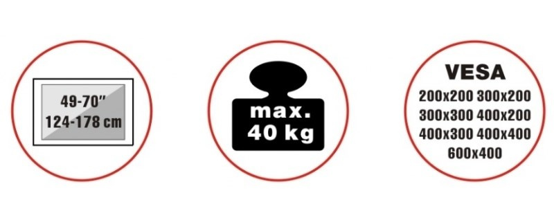 Unikátna televízna skrinka na Plasma a LCD TV s uhlopriečkou 49"- 70" (124-178cm) a hmotnosťou maximálne 40kg. Dizajnová kombinácia bielej kovovej konštrukcie + 4x drevené nohy (buk). Precízne tvarované a vedené káble pre maximálny estetický zážitok. Upevnenie VESA: 200x200, 300x200, 300x300, 400x200, 400x400, 600x400.
