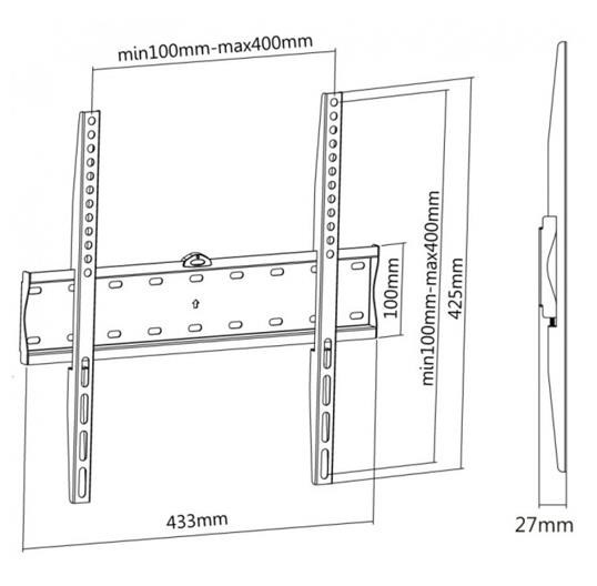 Nástenný oceľový držiak SLIM s minimálnou vzdialenosťou od steny na Plasma a LCD TV s uhlopriečkou 32"- 55" (81-140cm) a hmotnosťou maximálne 40kg. Stredová konzola na zavesenie TV s upevnenými držiakmi, nie je vertikálne výklopný, vzdialenosť od steny 27mm, vodováha, materiál oceľ, farba čierna. Uchytenie VESA: 200x200, 300x300, 400x200, 400x400.