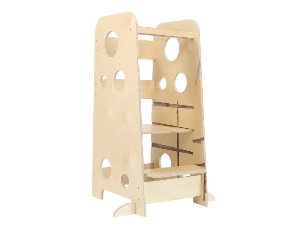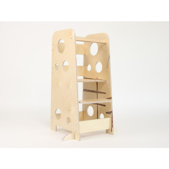 Rostoucí učící věž 3v1 Bublina Max 90 cm se stabilizačními prvky, bezbarvý lak