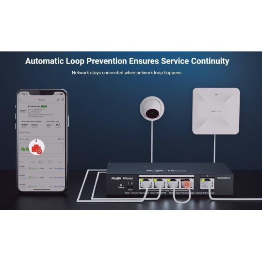 Popis produktu Inteligentní cloudově i přes webové rozhraní spravovatelný smart desktop PoE switch RG-ES209GC-P od značky Ruijie, nabízí cenově efektivní řešení s 9 Gigabit LAN porty z čehož 8 portů podporuje 802.3af/at PoE s celkovým PoE budgetem 120 W. Tento kompaktní přepínač je ideální pro síťové aplikace, které vyžadují výkon a spolehlivost. Co se výčtu funkcí týče, switch nabízí tichý chod bez ventilátorů, podporu až 16 VLAN, DHCP snooping, testování kabelu, ochranou proti zakruhování a v rámci PoE možnost použití až na vzdálenost 250 m při snížení linkové rychlosti na 10 Mbps. Klíčové vlastnosti • 9× 10/100/1000 Mbps LAN porty • 8× 802.3af/at PoE - max. 30 W/port, PoE budget 120 W • Kvalitní provedení, kovové šasi • Bez venilátoru • Nízká spotřeba - max. 10 W • Správa přes webové rozhraní a cloud • Celoživotní správa na Ruijie Cloud kdykoli a kdekoli • Rozpoznávání IP kamer - jedinečná hodnota pro CCTV síť • Automatická prevence proti zakruhování • Podpora Long Range PoE na vzdálenost 250 m Obsah balení • Zařízení • Napájecí adaptér 54 V/2.4 A Technické parametry Konektory a rozhraní Rychlost LAN:(9) 10/100/1000Mbps Napájení Typ napájení:DC konektor Typy PoE:PoE-Out (pouze) Podporované PoE-Out standardy:802.3af, 802.3at Počet PoE Out portů:8 PoE budget [W]:120 PoE na vzdálenost až 250m:Ano Max. spotřeba energie [W]:10 Napájení přes konektor/svorkovnici:54V / 2,4A Fyzické charakteristiky Provedení:Desktop Ventilátory:Bez ventilátoru Šasi:Kovové Tlačítka:Reset Provozní teplota [°C]:0 až 40 Šířka [mm]:202 Výška [mm]:28 Hloubka [mm]:108 Obecné Rychlost přepínání [Gbps]:18 Tabulka MAC adres:4000 Rychlost předávání paketů [Mpps]:13,4 Software Web management:Ano Management:Webové rozhraní, Ruijie cloud Funkce:VLAN, DHCP snooping Výchozí IP adresa:10.44.77.200 Výchozí jméno a heslo:Nastavuje se při prvním spuštění.