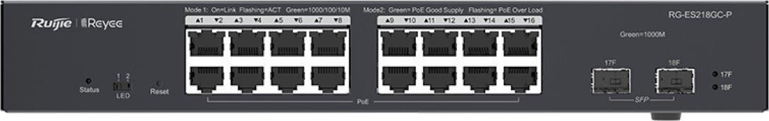 Reyee RG-ES218GC-P Smart mananged PoE switch, 16x PoE, 2x SFP