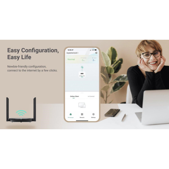 Popis produktu Cenově dostupný moderní bezdrátový router podporující pouze 2,4 GHz pásmo, 802.11n standard s přenosovou rychlostí 300 Mbps, má 4 fixní všesměrové antény se ziskem 5 dBi a produkt je navržený pro méně náročné domácnosti. Router nabízí kabelový 10/100 Mbps WAN port a k tomu 3x 10/100 Mbps LAN porty pro připojení stolních počítačů, tiskárny, herní konzole atd. Klíčové vlastnosti • Wi-Fi 4 (802.11n) • 2x2 MIMO, 300 Mbps • (4) 5dBi anténa • Podpora operačních režimů - AP Router, Repeater, Wisp • Lokální nebo vzdálená správa přes Ruijie Cloud • (1) 10/100 Mbps WAN + (3) 10/100 Mbps LAN • Guest WiFi Obsah balení • Zařízení • Napájecí adaptér 12V/1A • Patch kabel Technické parametry Bezdrátové vlastnosti Bezdrátové frekvence:2.4 GHz WiFi standardy:802.11n, 802.11b/g Přenosová rychlost - 2.4GHz [Mb/s]:300 Vysílací výkon 2.4GHz [dBm]:20 Šifrování:WPA-PSK/WPA2-PSK 2.4GHz MIMO:2 x 2 Typ antény:Fixní Počet fixních antén:4 Zisk antény [dBi]:5 Obraz Technologie a vymoženosti:Cloud Management Konektory a rozhraní Rychlosti WAN:(1) 10/100Mbps Rychlost LAN:(3) 10/100Mbps Napájení Max. spotřeba energie [W]:12 Napájení přes konektor/svorkovnici:12V / 1A Fyzické charakteristiky Použití:Vnitřní Tlačítka:Reset Provozní teplota [°C]:-10 až 45 Hmotnost [g]:260 Šířka [mm]:210 Výška [mm]:33 Hloubka [mm]:180 Software Operační mód:Repeater, AP Router, Klient Router (wisp) Výchozí IP adresa:192.168.110.1 Výchozí jméno a heslo:Nastavuje se při prvním spuštění.