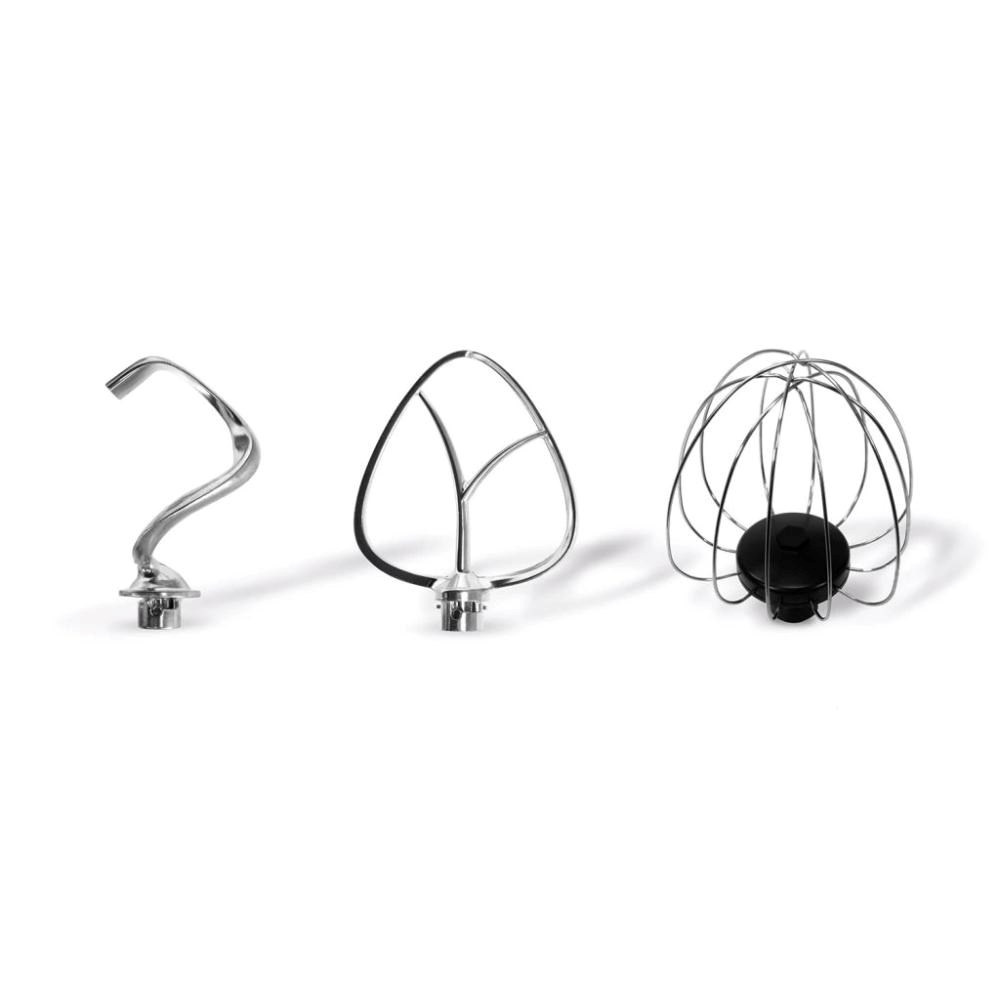 Šľahacia balónová metla dokáže vyšľahať bielky do takej pevnosti, že môžete pokojne obrátiť misku vzhľadom nadol – a bielky sa ani nehnú. Perfektne našľahaná šľahačka či krémová puding? Hotovo behom chvíľky! Ultralehká hliníková miešacia metla zase s ľahkosťou zvládne piškótové cestá na torty či palacinky a hutnejšie nátierky. Špeciálne tvarovaný hnetací hák potom hravo spracuje hutné cestá na pizzu či chlieb, ale aj domáce rožky, chrumkavé žemle alebo vláčne briošky na burgery. Teda už sa vám zbiehajú sliny?