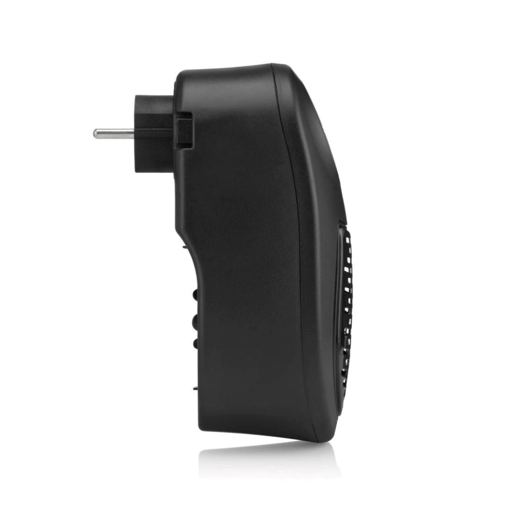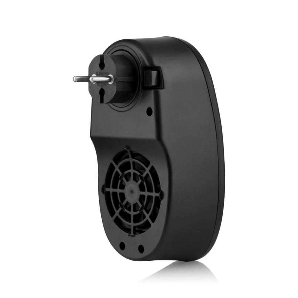 Integrovaný ventilátor tohto kompaktného kúrenia má priemer 53 mm a ponúka 2 rýchlosti (4500 a 5000 otáčok za minútu), takže sa ľahko prispôsobí rôznym situáciám. Nižšia rýchlosť napríklad využijete pre pokojnú prácu pri počítači, kde nechcete rušivé prúdenie vzduchu, zatiaľ čo vyššia rýchlosť je skvelá napríklad pre rýchle vykúrenie práve vyvetranej miestnosti alebo pre okamžité zohrievanie po príchode zvonku. Prístroj nemá ani chýbajúci vypínač, ktorý umožňuje zapnúť alebo vypnúť ventilátor bez vytiahnutia zo zásuvky.
