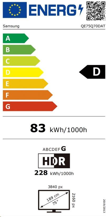Samsung QE75Q70D 75" TV, 4K Ultra HD, QLED, WiFi, Bluetooth 5.2, Quantum HDR, Tizen OS, Eco Sensor