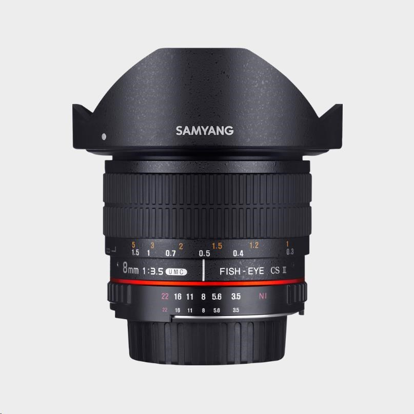 Objektív Samyang 8mm f/3.5 UMC Fish-Eye CS II je špeciálne navrhnutý pre digitálne DSLR s APS-C snímačom, ale môže byť použitý aj na full frame fotoaparátoch s odstránenou slnečnou clonou z objektívu. Na full frame fotoaparátoch poskytuje Samyang 8mm f/3.5 Fish-Eye široké zorné pole, čo je ideálne pre panoramatické snímky a 3D virtuálne prehliadky.