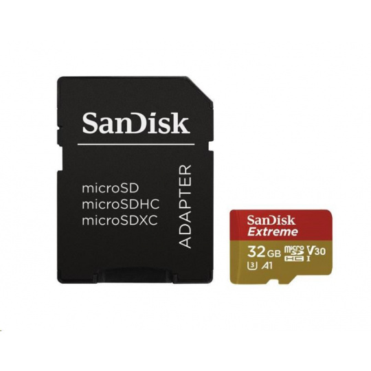 Karta SanDisk MicroSDHC 32GB Extreme (100MB/s, Class 10, UHS-I U3 V30) + adaptér
