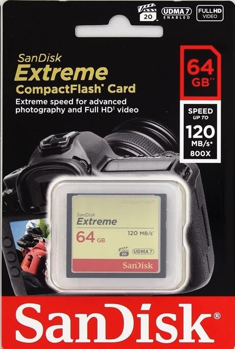 SanDisk Compact Flash 64GB Extreme (R:120/W:85 MB/s) UDMA7