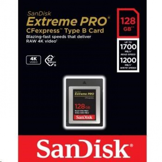 Karta SanDisk Extreme Pro CFexpress 128 GB, typ B, 1700 MB/s čítanie, 1200 MB/s zápis