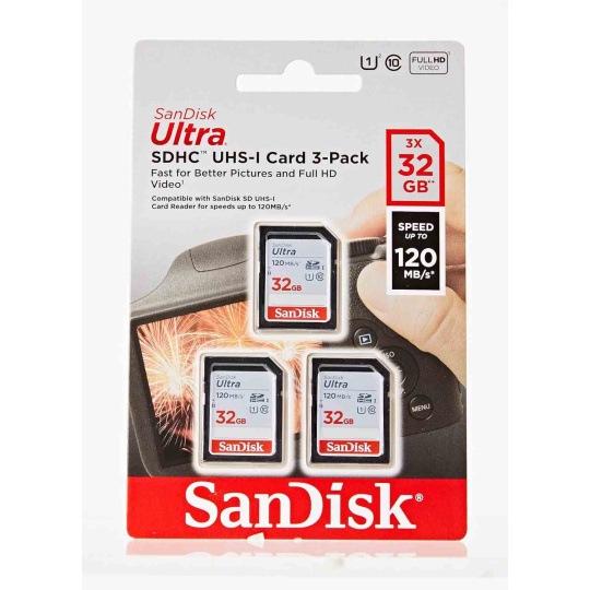 SanDisk SDHC karta 32GB Ultra (R:120/W:120 MB/s, UHS-I, C10), 3-Pack