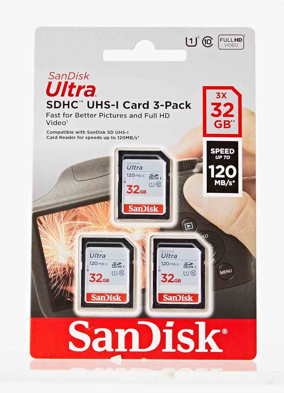 SanDisk SDHC karta 32GB Ultra (R:120/W:120 MB/s, UHS-I, C10), 3-Pack