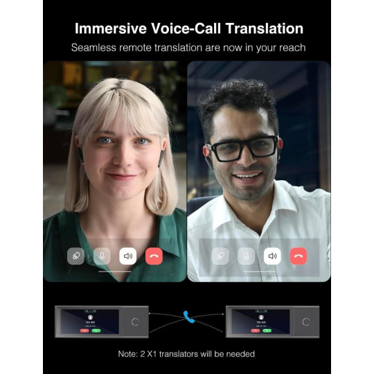 AI tlmočník X1 je ideálny pre obojsmerné preklady, keď si môžete jedno slúchadlo požičať svojmu partnerovi a druhé si nechať pre seba. Tento spôsob umožňuje simultánny preklad bez nepríjemných oneskorení alebo prerušenia konverzácie. Výsledkom je plynulý a prirodzený dialóg, ktorý zachováva dynamiku a komfort komunikácie. X1 vám tak pomôže prekonať jazykové bariéry v každej osobnej aj obchodnej situácii. Prípadne sa môžete spoľahnúť na vstavaný reproduktor.