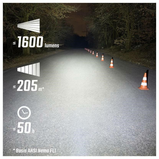 Doba svietenia: 1,75 h v režime High, 2,8 h v režime Mid, 6,8 h v režime Low, 18 h v režime Eco, 5 h v režime Night Flashing, 50 h v režime Day Flashing