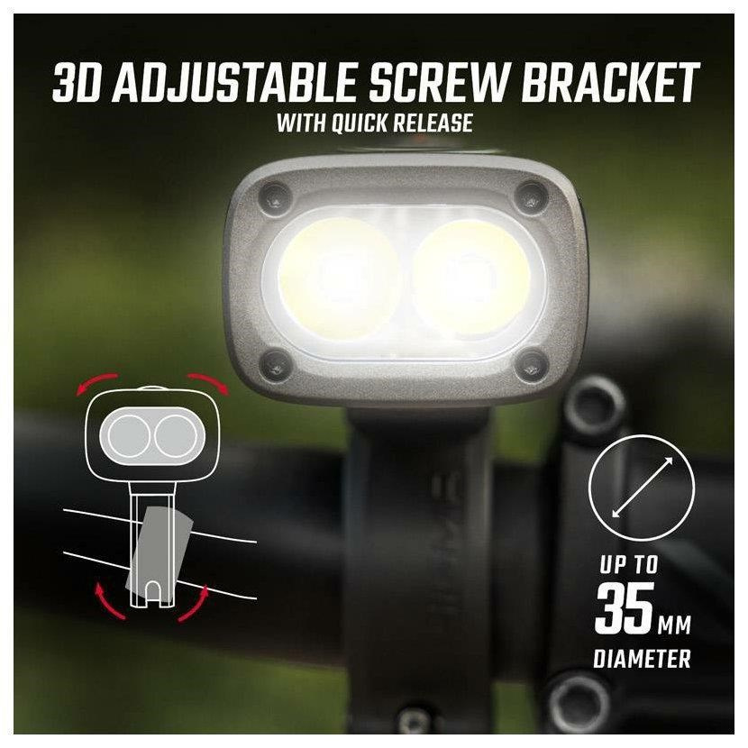 Predné svetlo BUSTER 1600 so svojimi 1600 lumenmi a chytrými funkciami zabezpečí bezpečnosť nočných jázd. Dve vysoko kvalitné LED diódy v kombinácii s inovativnou dvojitou šošovkou vytvárajú rovnomerný svetelný obrazec, ktorý svieti na 205 metrov. Vďaka šiestim režimom osvetlenia je možné nastaviť intenzitu svetla podľa potreby a umožniť prevádzku svetla až 50 hodín. Vďaka pamäťovej funkcii sa svetlo pri ďalšom zapnutí zapne v poslednom použitom režime. Svetlo BUSTER 1600 je možné dobíjať aj počas prevádzky pomocou funkcie rýchleho nabíjania USB-C.