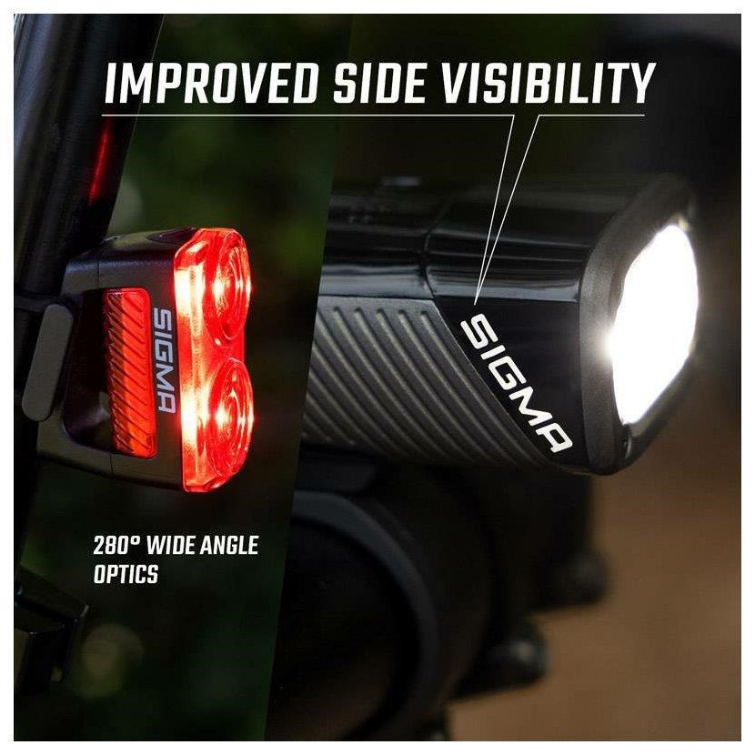 Svetelný kužeľ svetla Buster 1600 je naozaj unikát. Perfektne nasvieti cestu aj chodník tak, aby cyklista oveľa lepšie videl do zákrut a na terén. Umožňuje to novo vyvinutá dvojitá šošovka so dvomi rôznymi optikami a dvomi prémiovými LED od spoločnosti Osram. Výsledkom je množstvo svetla a najmä veľmi široký a homogénny svetelný kužeľ. Logo SIGMA na podélných stranách svetla zabezpečuje podstatne lepšiu viditeľnosť zo strany a tým aj vyššiu bezpečnosť v cestnej premávke