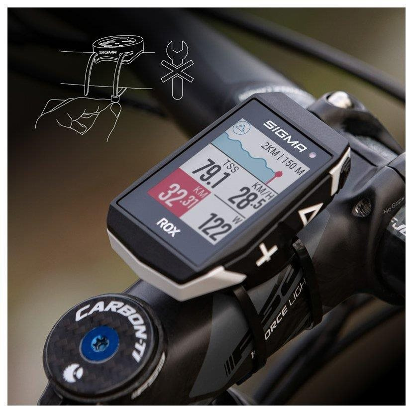 Držiak je možné počas niekoľkých sekúnd upevniť pomocou dvoch káblových pásov na riadítka alebo predstavec. Držiak je vhodný pre celú radu SIGMA ROX a je možné ho pripevniť na všetky typy riadidiel.