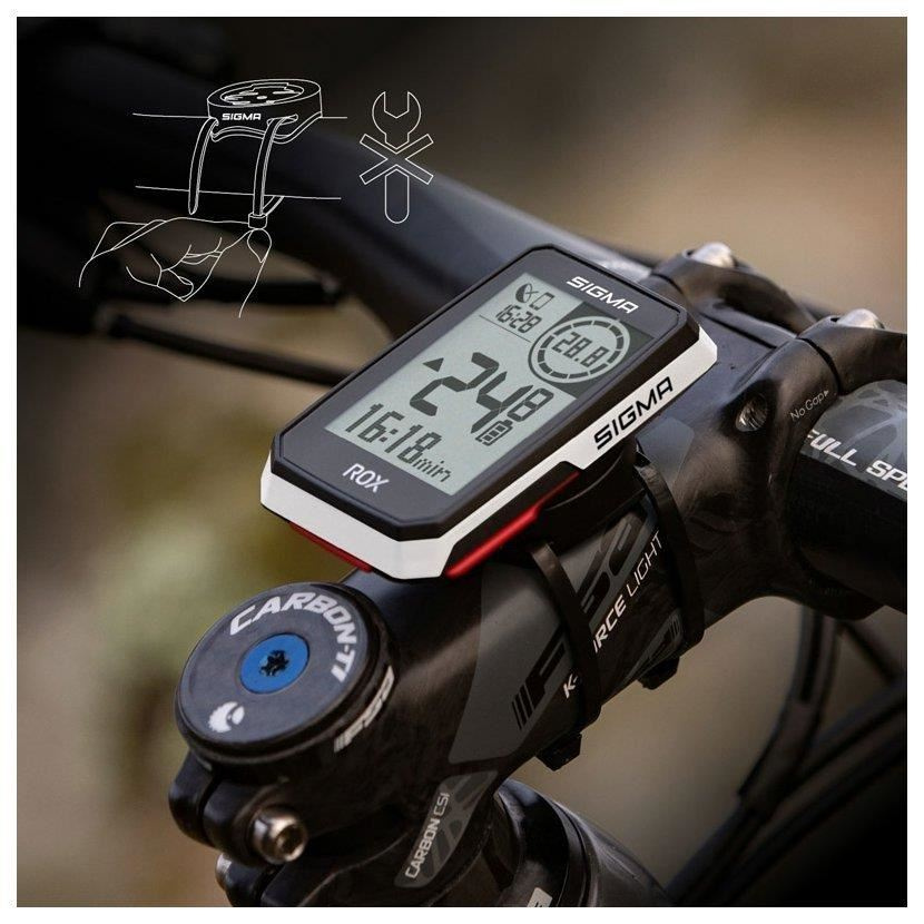 Cyklocomputer ROX 2.0 je možné ľahko namontovať priamo na riadidlá. Montáž káblov a senzorov nie je nutná. Po zapnutí vyhľadá ROX 2.0 do niekoľkých sekúnd polohu cyklistu pomocou GPS a GLONASS. Vďaka intuitívnemu ovládaniu dvoma tlačidlami je možné okamžite začať jazdu.