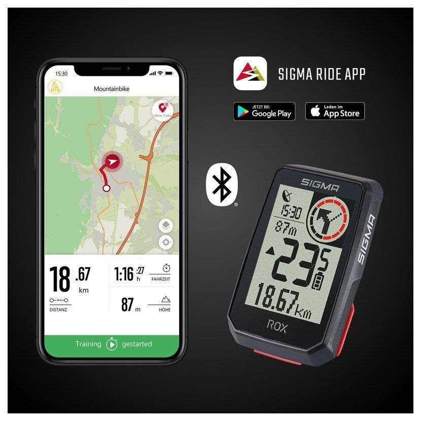 Jednoducho s ROX 2.0. Tento GPS cyklopočítač je skvelý pre všetkých volnočasových športovcov, ktorí si želajú využívať najdôležitejšie výhody GPS a pritom za cyklopočítač nechcú utratiť celý majetok. Cyklopočítač má veľký a dobre čitateľný displej, a v kombinácii s jednoduchým ovládaním tak predstavuje ideálneho spoločníka pre cyklistické výjazdy. 14 funkcií ako zobrazenie rýchlosti, vzdialenosti a tréningového času, navigačné pokyny a pripojenie k e-biku nie sú pre cyklopočítač ROX 2.0 žiaden problém! Vďaka bezplatnej aplikácii SIGMA RIDE je možné aktuálne údaje zjazdu kedykoľvek sledovať a analyzovať v aplikácii SIGMA RIDE na smartfóne.