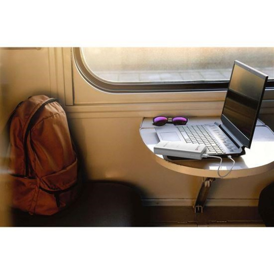 Prednabitá a s priloženým 30cm USB-C káblom je okamžite pripravená na použitie. Tri výkonné USB-C a USB-A porty umožňujú nabíjať až tri zariadenia súčasne. Notebook sa nabíja samostatne cez najsilnejší USB-C 100W. Šesťnásobná bezpečnostná ochrana zabezpečuje bezpečné používanie a dlhú životnosť batérie.