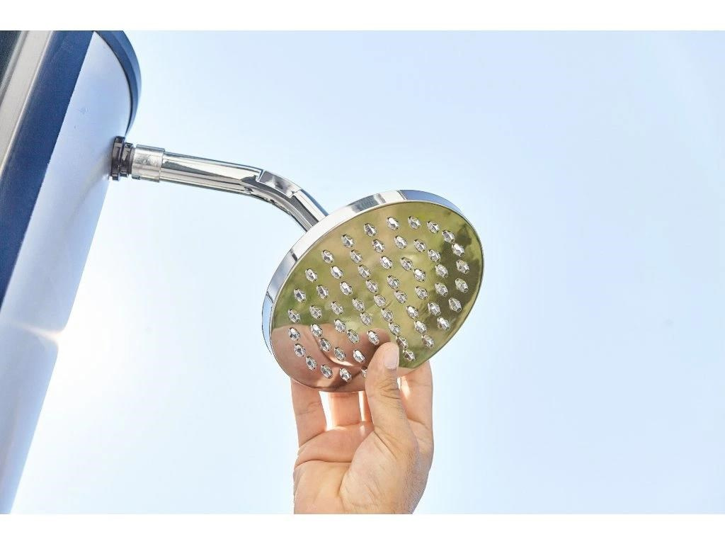 Solárna sprcha je ideálny zdroj teplej vody bez použitia elektriny. Voda je v solárnom zásobníku jednoducho ohrievaná slnečným žiarením až na 60°C. K tomu prispieva aj čierne prevedenie sprchy. Sprcha je vybavená miešacou pákovou batériou, aby ste si nastavili teplotu vody, ktorá vám bude vyhovovať.