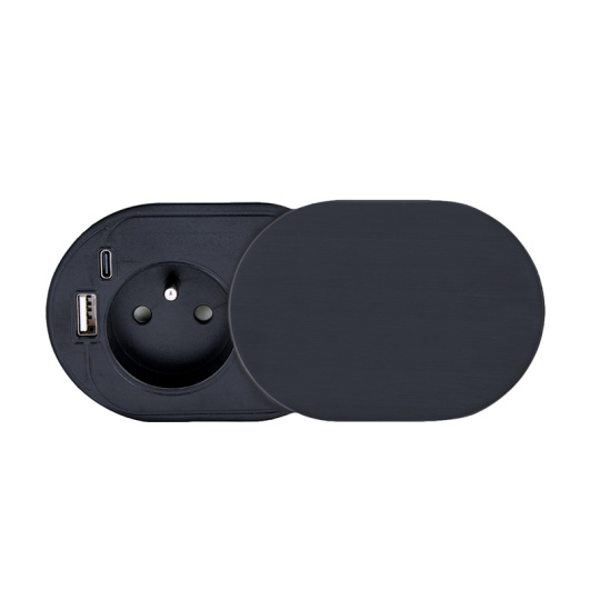 Vestavná elektrická zásuvka je praktickým doplnkom pre pracovné dosky a stoly v domácnostiach, kanceláriách alebo ďalších priestoroch. Je vybavená jednou štandardnou zásuvkou 230V/16A s detskou poistkou a modernou USB rýchlonabíjačkou. USB-A port podporuje technológiu Quick Charge 3.0, zatiaľ čo USB-C ponúka Power Delivery s maximálnym výkonom 20W. To umožňuje rýchle a efektívne nabíjanie všetkých moderných zariadení, od telefónov po tablety.