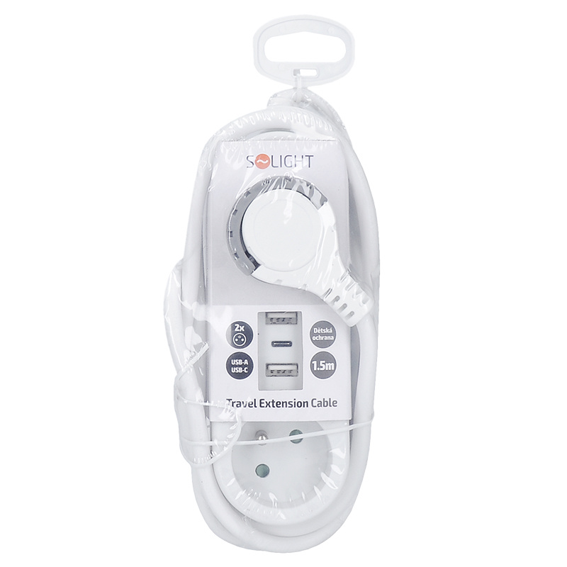 .Solight 2z + USB A+C 17W, cestovní prodlužovací přívod 1.5m, bílý