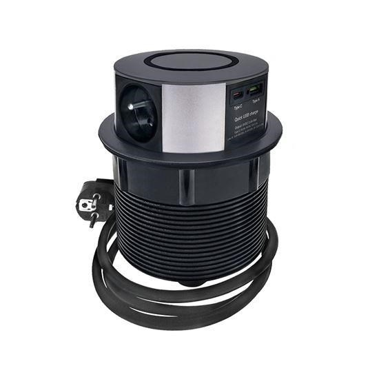 Solight 3z + USB A+C 20W PD, Wireless 10W, výsuvný blok zásuvek, 2m, černý