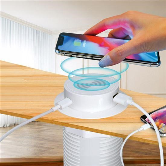 .Solight bezdrátová 15W + USB A+C 20W PD výsuvná nabíječka, bílá