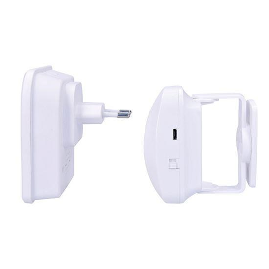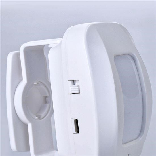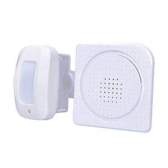 hlásič pohybu/gong s bezdrôtovým senzorom - PIR čidlo automatický režim: vyšle signál pri detekcii pohybu hlasit????: 65 - 80 dB(A) dosah signálu:max. 40m bez prekážok operačný rozsah: detekcia pohybu: 0-8m uhol záberu: 15° vertikálne uhol záberu: 100° horizontálne 36 nastaviteľných melódií 3D otočný stojanček senzora, montážne otvory na stenu napájanie: prijímač: AC 230V~50Hz senzor: 3 x AAA alkalické batérie alebo externá USB nabíjačka 5V DC (nie sú súčasťou balenia) vhodný pre obchody, firmy, kancelárie farba: biela