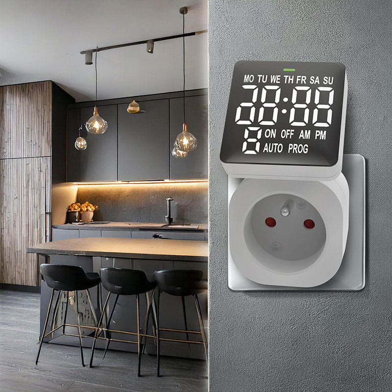 Digitálny programovateľný časovač s detskou poistkou, ktorý môže byť vynikajúcim pomocníkom pri spúšťaní Vašich elektrospotrebičov v správny čas. Veľmi dobre čitateľný inverzný displej pre jednoduchšie čítanie hodnôt. Časovač je vybavený možnosťou nastavenia pre 8 spínacích cyklov a 15 režimov opakovania podľa Vámi požadovaných dní a hodín. Ďalšou možnosťou je režim náhodného časového spúšťania.