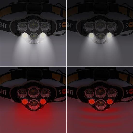 nabíjacia LED čelová svietidlo s bielym a červeným svetlom svietivosť: max. 550lm 8 režimov svietenia: 4x základné režimy + 4x pridavné režimy* 6x predná LED dióda 1x zadná LED dióda so samostatným vypínačom outdoorové použitie (stupeň krytia IP44) výdrž batérií min/max: 4hod./16hod. doba nabíjania: 9hod. napájanie: 2x batérie 18650 3.7V 2200mAh Li-on nabíjanie: micro USB farba: čierna * pre aktiváciu pridavných režimov svietenia dlho podržte tlačidlo