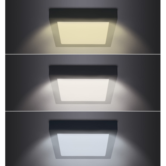 Solight LED mini panel CCT, přisazený, 12W, 900lm, 3000K, 4000K, 6000K, čtvercový, černá barva