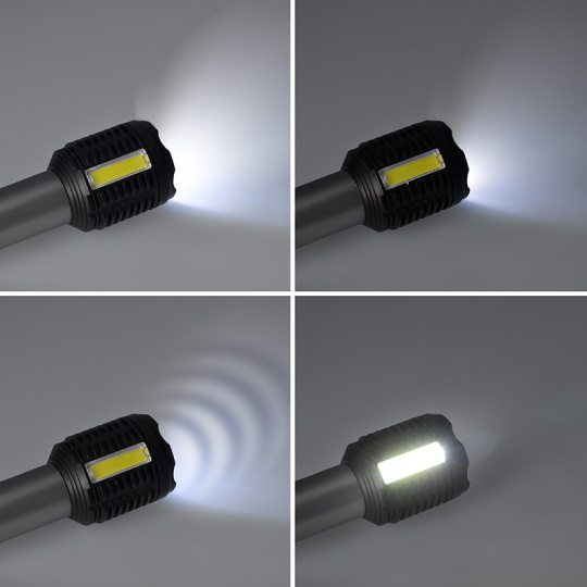 - ručná LED svietidlo s hlavným a bočným zdrojom svetla