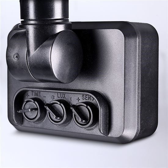 svetelný zdroj: 30W SMD LED svetelný tok: 2550lm teplota chromatičnosti: 4000K (neutrálna biela) životnosť LED: 25.000 hodín krytí: IP44 (ochrana proti kvapkajúcej vode, vhodné na vonkajšie použitie) vodotesný konektor pre prepojenie napájania svetelný kužel: 120° užitočný svetelný tok v uhle 120°: 2550lm detekčný uhol senzora: 120° detekčná vzdialenosť: max. 10m (do 24°C) nastavenie času svietenia: 5s - 10min nastavenie svetelnej citlivosti: 3-2000LUX index podania farieb: CRi>80 napätie: AC 220V - 240V, 50Hz prevádzková teplota: -20°C až +50°C rozmery: 165 x 165 x 45mm vodotesný pripojovací konektor pre priemer kábla 4-8mm materiál: tlakovo liaty hliník farba: čierna energetická trieda: F