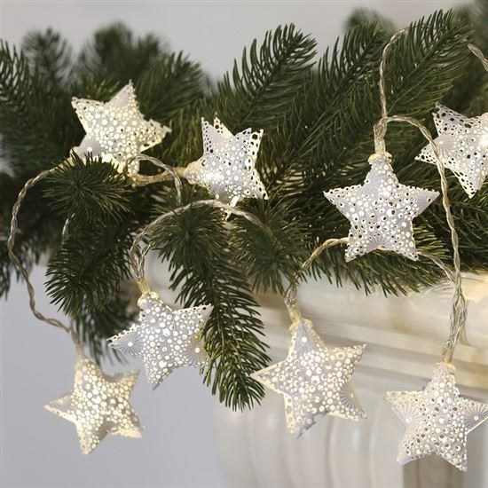 Solight LED řetěz vánoční hvězdy, kovové, bílé, 10LED, 1m, 2x AA, IP20