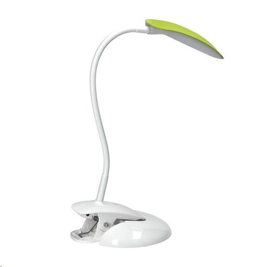 stolná lampička s LED svetelným zdrojom lampička obsahuje pripínací klip aj podstavec pre umiestnenie na stôl tri vymeniteľné farebné kryty súčasťou: biela, čierna, zelená stmievateľná vo troch stupňoch jasu zapínanie a zmena jasu dotykom prsta lampičku je možné ohýbať a natáčať podľa potreby príkon: max. 5W svetelný tok: max. 300lm teplota svetla (chromatičnosti): 4000K (neutrálna biela) farba: biela základňa, meniace sa farebné kryty napájanie: výstup AC 100-240V výstup DC 5V 1A rozmery: cca 380 x 280mm dĺžka napájacieho kábla: 140cm energetická trieda: A+ LED zdroj nie je možné meniť materiál: ABS