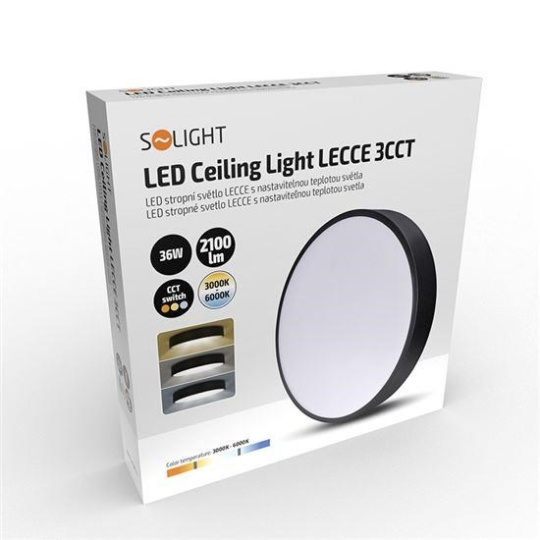 Solight LED stropní osvětlení LECCE, 3CCT, 36W, 2100lm, 30cm, 3000/4000/6000K, černá