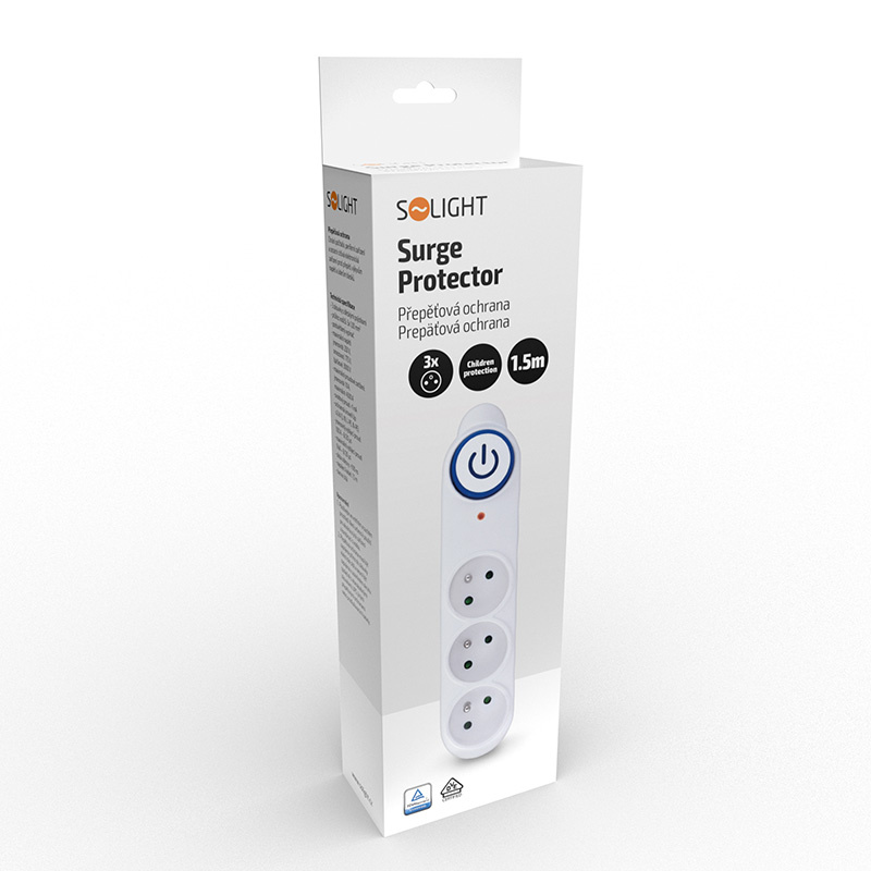 .Solight přepěťová ochrana, 3 zásuvky, 1,5m, bílá
