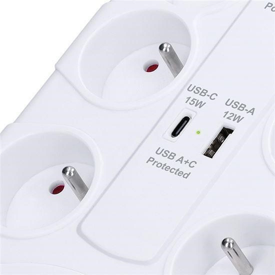 Spoľahlivá prepäťová ochrana s integrovanou USB nabíjačkou chráni vaše zariadenia pred náhlymi výkyvmi napätia. Vďaka ôsmim zásuvkám a dvom USB portom je ideálna do domácnosti aj kancelárie. So maximálnym zaťažením až 3680 W zvládne aj energeticky náročnejšie spotrebiče.