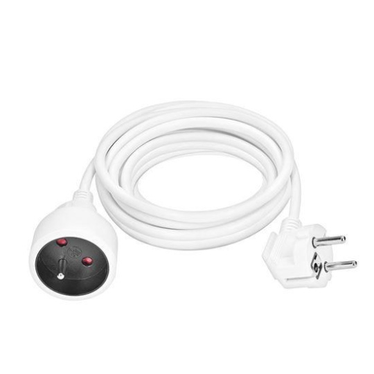 Kompaktný biely predlžovací kábel s dĺžkou 5 metrov a jednou zásuvkou je ideálny na jednoduché predĺženie elektrickej energie v domácnosti, kancelárii alebo dielni. Vhodný na pripojenie samostatného zariadenia mimo dosah pevnej zásuvky.