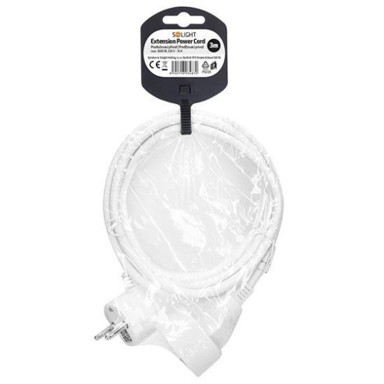 .Solight prodlužovací přívod 3m, 1 zásuvka, 16A/3680W, PVC, bílý