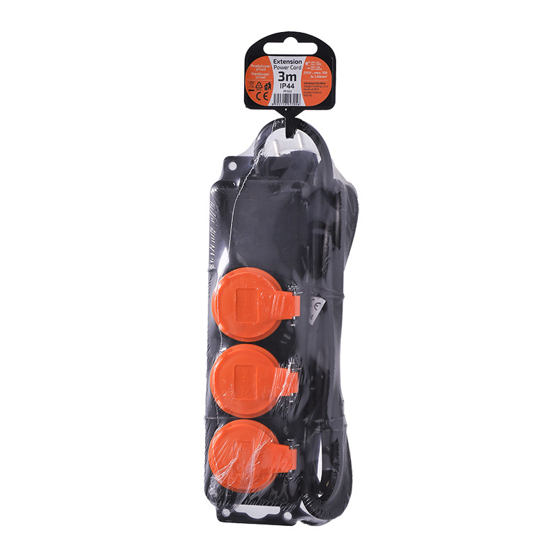 .Solight prodlužovací přívod IP44, 3 zásuvky, gumový kabel, venkovní, 3m