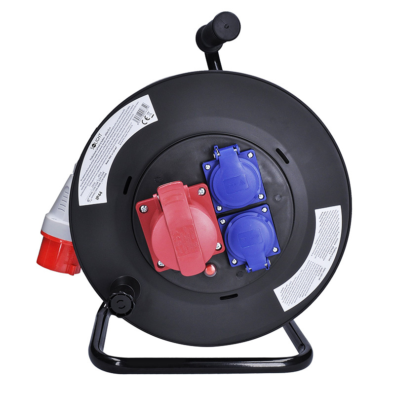 Solight prodlužovací přívod na bubnu, 3 zásuvky, 400V + 230V, 25m gumový kabel 5x1,5mm2, IP44