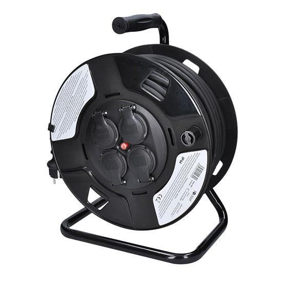 Solight prodlužovací přívod na bubnu, 4 zásuvky, venkovní, 50m gumový kabel, 3x 1,5mm2, IP44